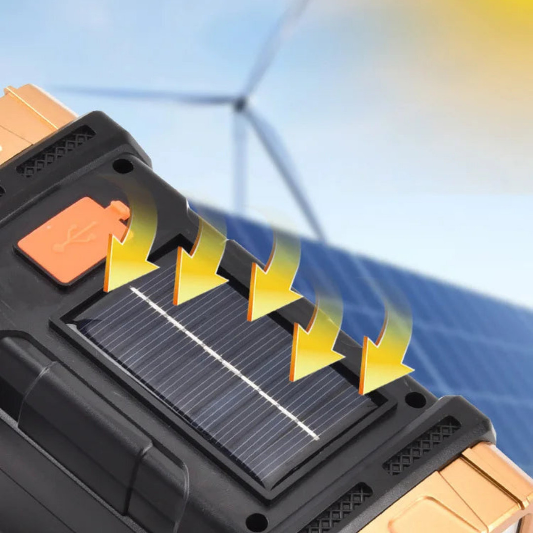 Su sistema de recarga solar y por cable USB garantiza energía continua sin importar el lugar. Ideal para zonas sin acceso eléctrico o para emergencias.