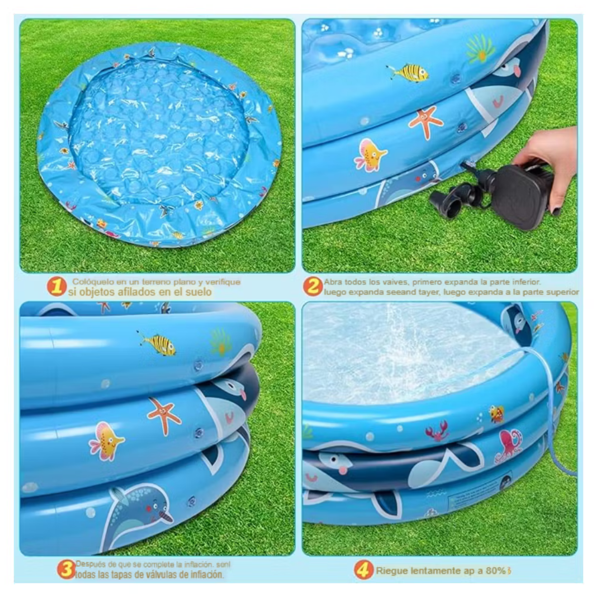 ¡La piscina perfecta para que tus pequeños se refresquen y diviertan bajo el sol! Llena de color y alegría, esta piscina inflable ofrece a los niños a partir de 3 años un oasis de diversión acuática segura. Cinco razones para elegir esta piscina: