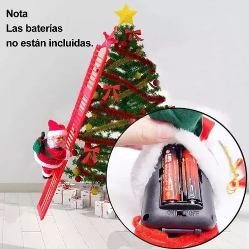 sta es una decoracion unica de escalada perfecto para decorar un ambiente navideño en el hogarNota: requiere 2 pilas AA (no incluidas) y su interruptor esta en el trasero de santaMedida alto escalera: 66cmMedida Pascuero: 20cm